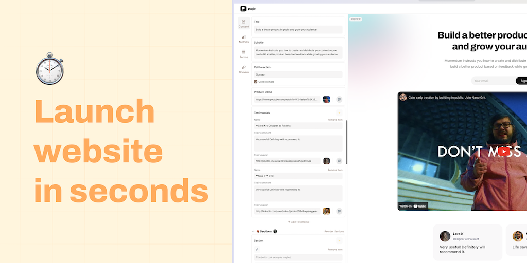 Momentum Page - Launch your website in seconds. Get users in minutes | Product Hunt