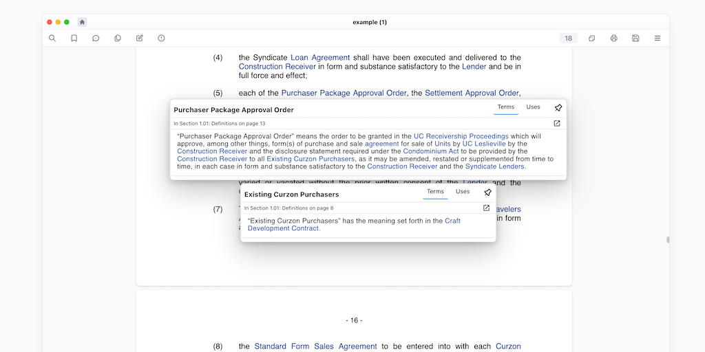 Macro PDF Editor is a native Mac/Windows app that uses AI to make documents interactive & editable. Click any cross-reference (e.g. Section 7.1) for a preview window, navigate with multiple tabs like