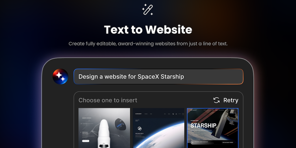 With Dora AI (Alpha), you can generate powerful websites with a single prompt, fueled by AI 3D animation. 🌟 Text to website 🧊 Generative 3D interaction 🤖 Advanced AI animation
