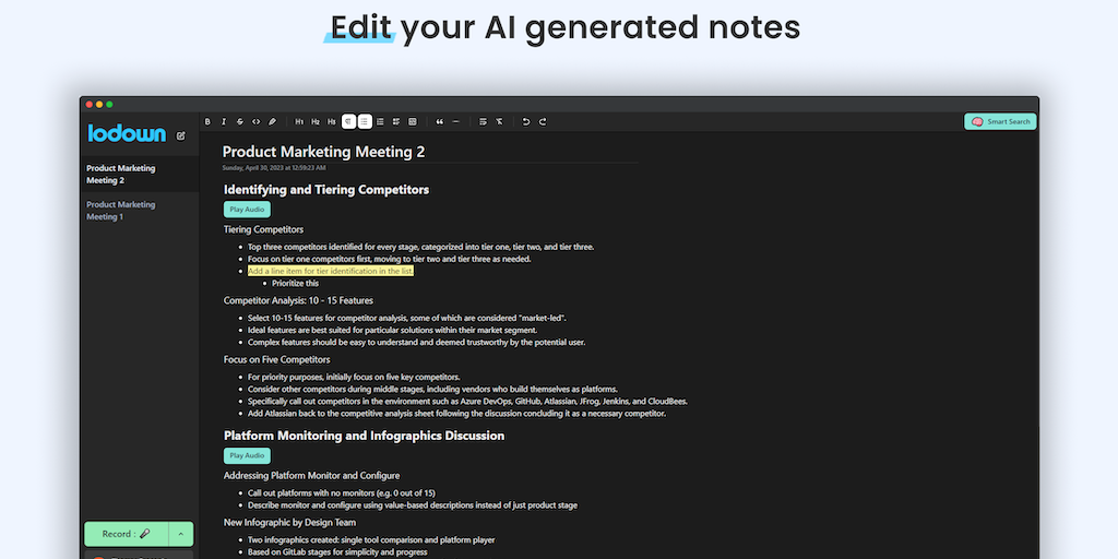 Lodown records and transcribes audio into notes, allowing users to easily review information. Optimize your productivity and focus on what really matters.