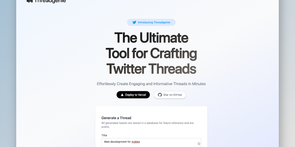 ThreadGenie - The Ultimate Tool for Crafting Twitter Threads | Product Hunt