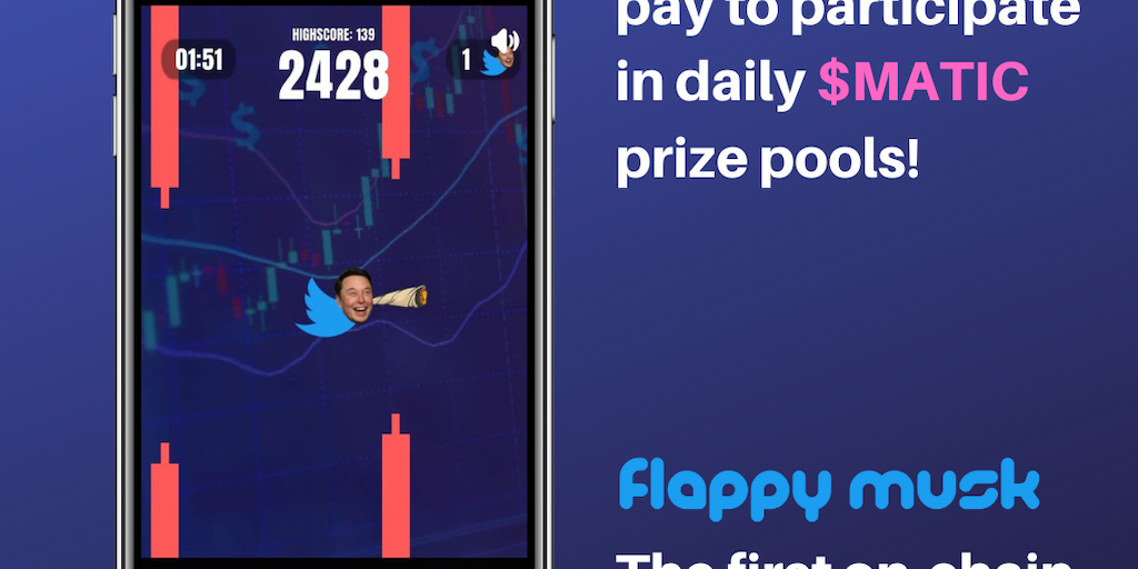Flappy Musk is a fun, beginner friendly, interactive meme. You could play for free, but instead if you choose to Play-To-Earn, you can participate in daily tournaments with 50 $MATIC prize pools!