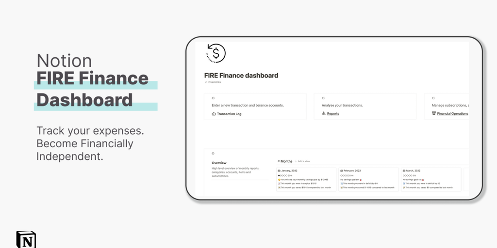 Notion (FIRE) Finance Dashboard - Track your Finances Become financially independent | Product Hunt