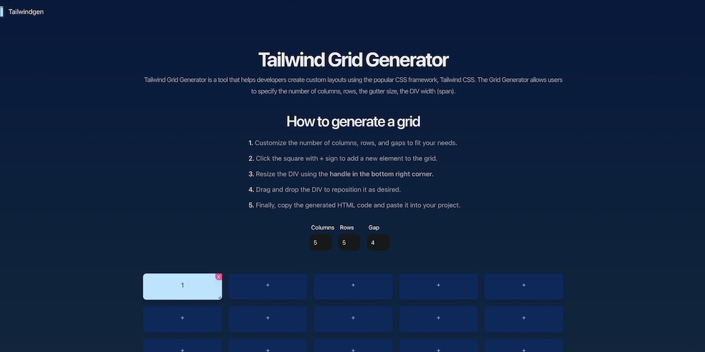 Tailwind Grid Generator - Simple tool to generate Tailwind CSS grids | Product Hunt