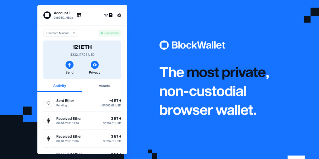 BlockWallet is an incognito mode for your crypto, featuring advanced privacy tools in a familiar and user-friendly wallet experience. Reclaim your financial privacy on blockchain - now it's easy.