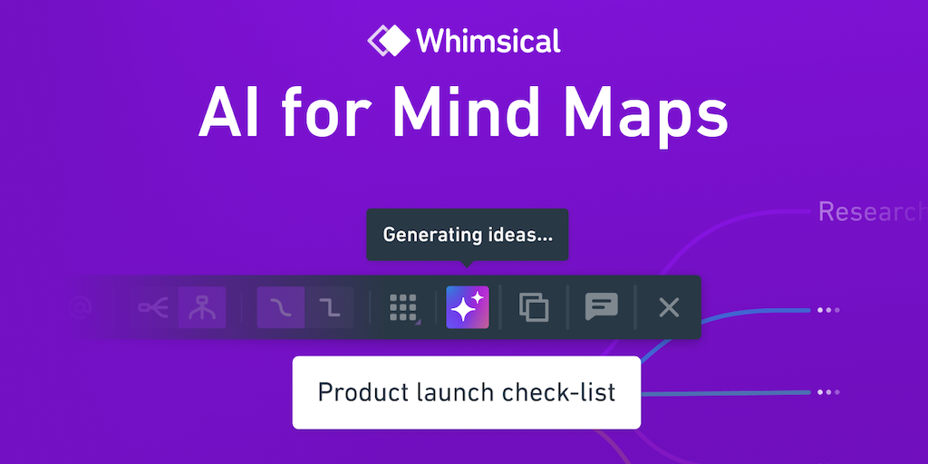 Whimsical Mind Maps now offer AI-generated suggestions: * Fresh ideas with a single click * No more mental blocks during brainstorming * Get informed faster than ever before