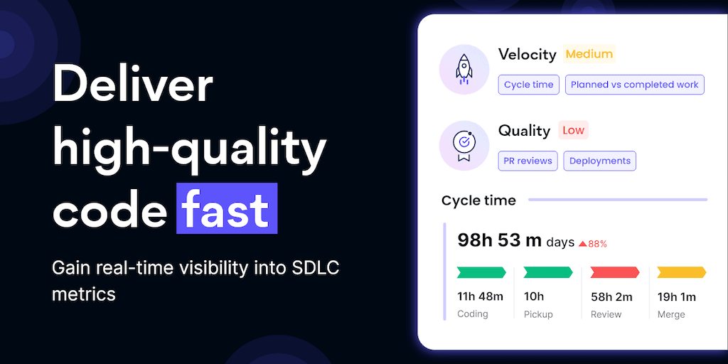 Go beyond DORA & traditional metrics to measure engineering efficiency - improve velocity, quality & throughput of your dev teams by co-relating SDLC metrics, work distribution & well-being. Just plug