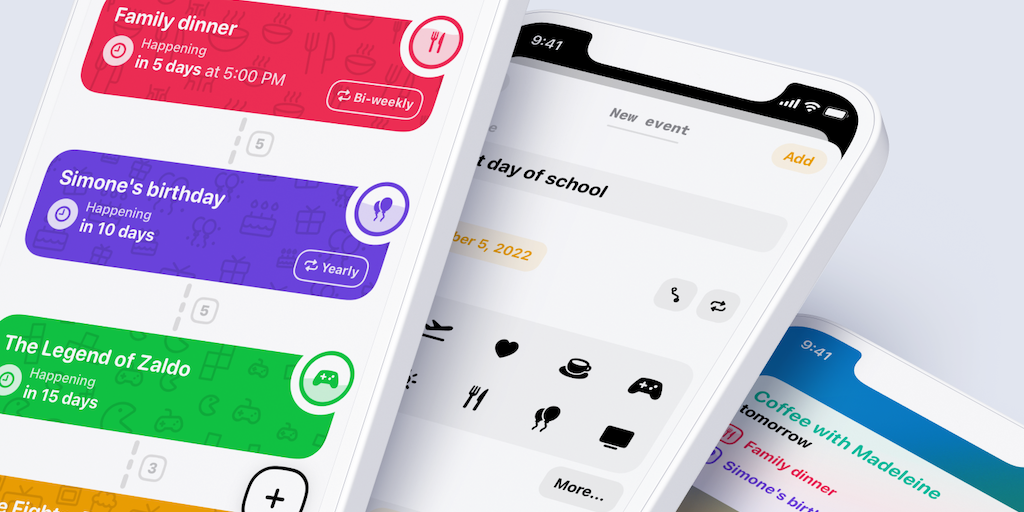Up Ahead is a playful, beautiful way to keep track of everything you’re looking forward to. Create events in seconds, and build yourself an eclectic timeline full of birthdays, holidays, vacations, ga