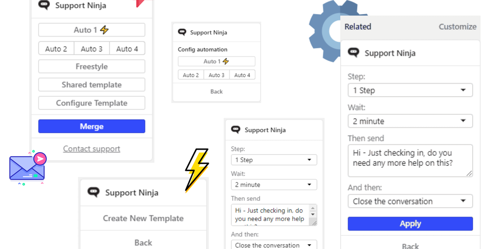 With Support Ninja, you can easily automate your follow-ups, trigger multiple actions in one-click and keep your inbox clean. That's not all, we will even merge your duplicate conversations and have everything centralized ⚡