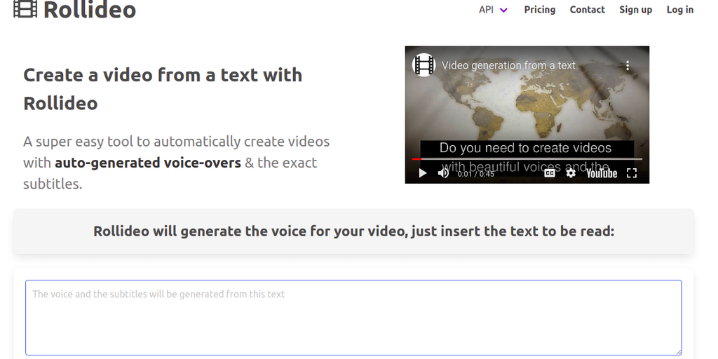 Create a video from an input text, with the voice-overs and the exact subtitles. Rollideo allows you to automate a lot of repetitive tasks in video production, and can produce a new version of a video