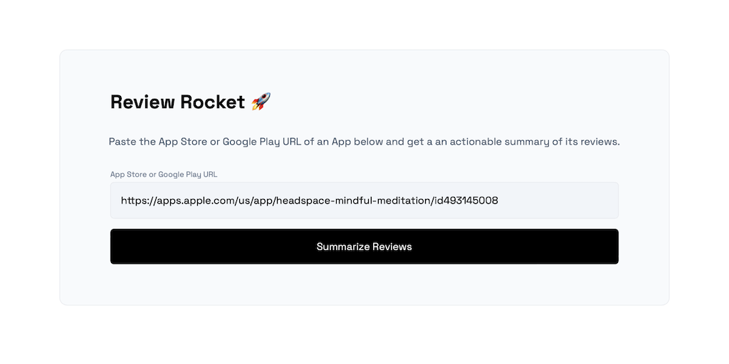 Review Rocket is a simple web-app that reads your App Store or Play Store reviews and finds the top 5 feature ideas using GPT. Just paste in the URL of your own or a competitor's app and Review Rocket