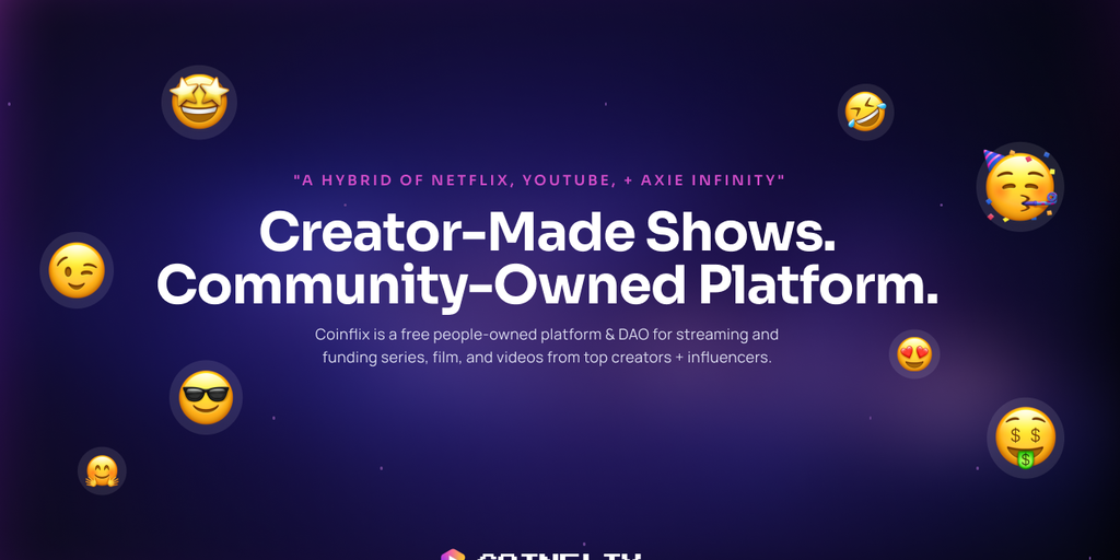 Coinflix is a people-owned platform & DAO for streaming & funding film & videos from top creators. Community decides what gets funded, then has the potential to share in the upside; with a token power