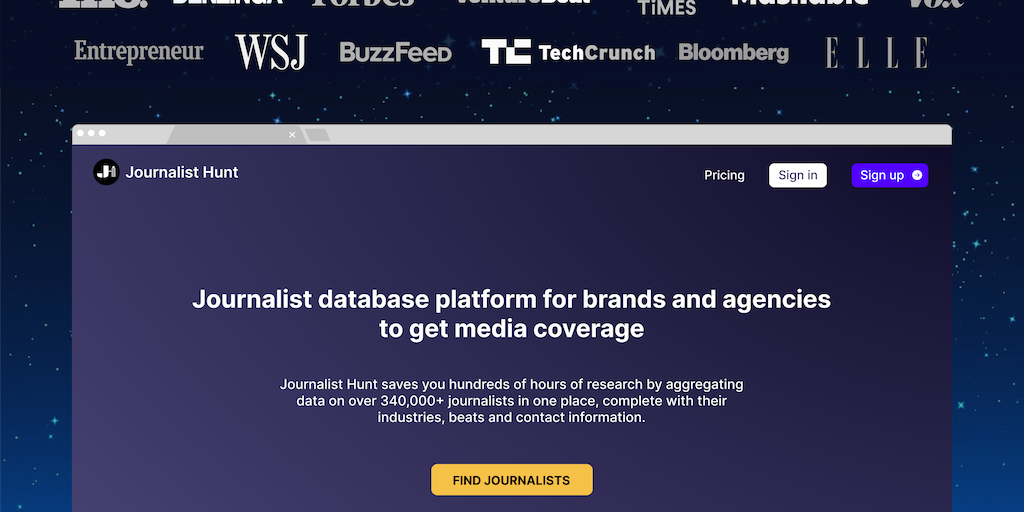 Journalist Hunt - A database of 340k+ journalists to feature your business | Product Hunt