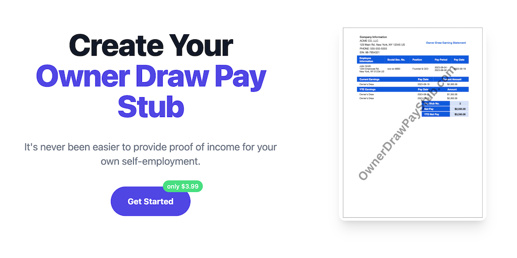 Owner Draw Pay Stub - Quick and easy way to generate owner draw earning statements | Product Hunt