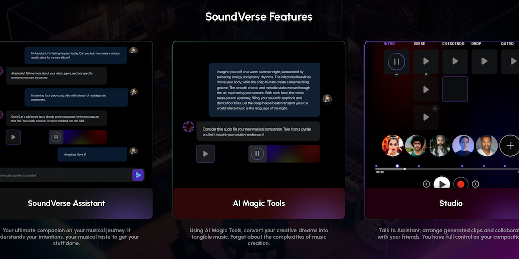 SoundVerse is an AI first audio creation platform that allows audio creators to create content in a flash with the help of SoundVerse Assistant and AI Magic Tools such as Text to Music, Lyrics Writing