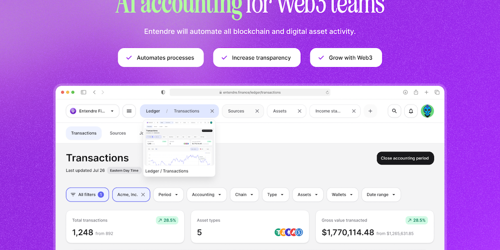 Entendre Finance - Accounting AI for Web3 teams | Product Hunt
