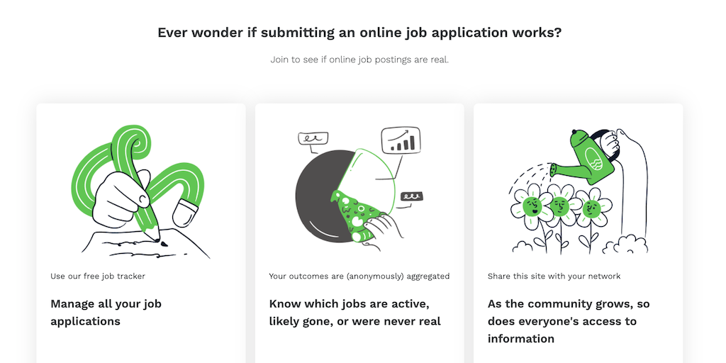 Ever wonder if submitting an online job application works? Use our free app to track your applications. The platform aggregates data to reveal which jobs are still live, which are dead, and which were