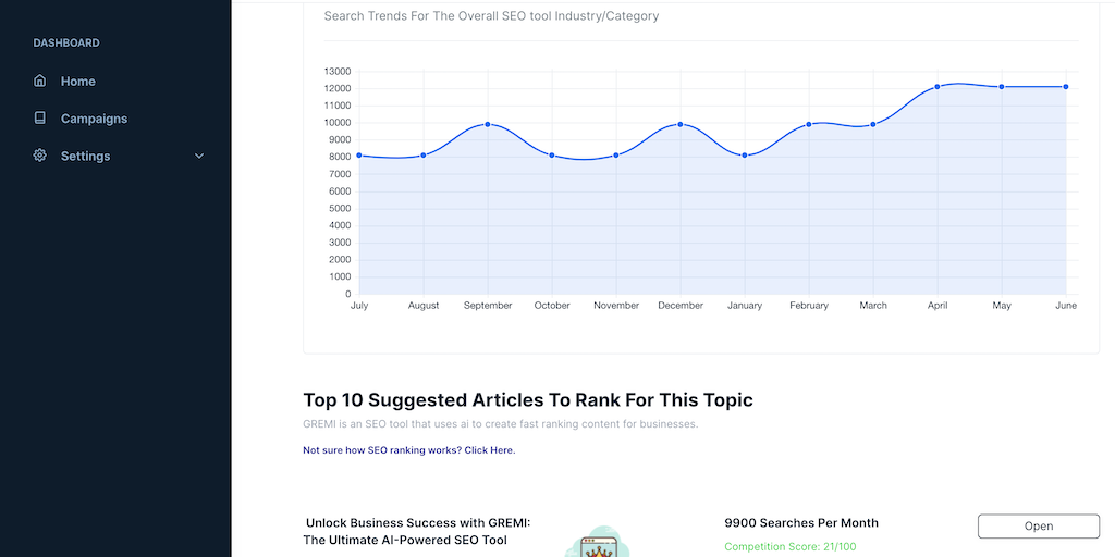 GREMI uses AI to find search trends related to your product or service and then instantly builds creates the content needed to rank for them, in a single click.