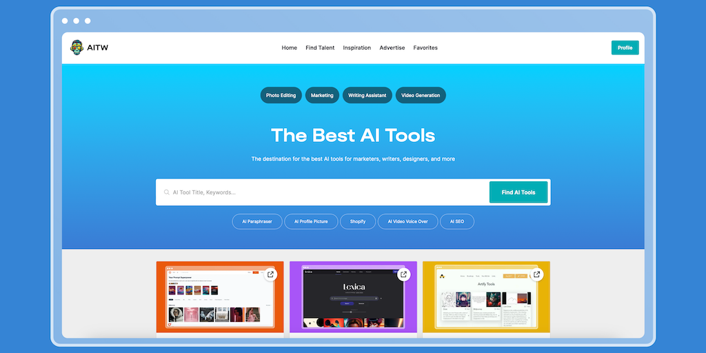 AITW is a platform to search and discover the best AI tools to help you with work and everyday life. It was created by the team at Blu.Ventures and has already had hundreds of users sign up and use it