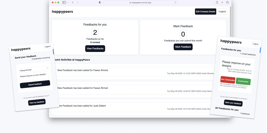 HappyPeers is an innovative feedback system for your organisation that encourages people to speak up by maintaining anonymity, identify points of improvement for individuals and organisation for a hap