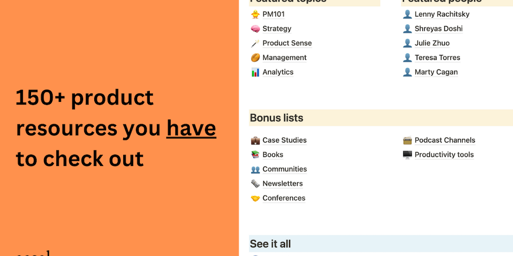 150 of the best product resources (articles, tweets, podcasts, communities, tools) organised and summarised 🔥 Hand-picked by Product Managers for Product Managers ❤️