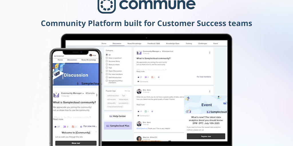 Q&A forum, Knowledge base, User training, Newsletter, Event management...all in one place. Commune works as a customer communication hub and strengthens community engagement by displaying optimized ex