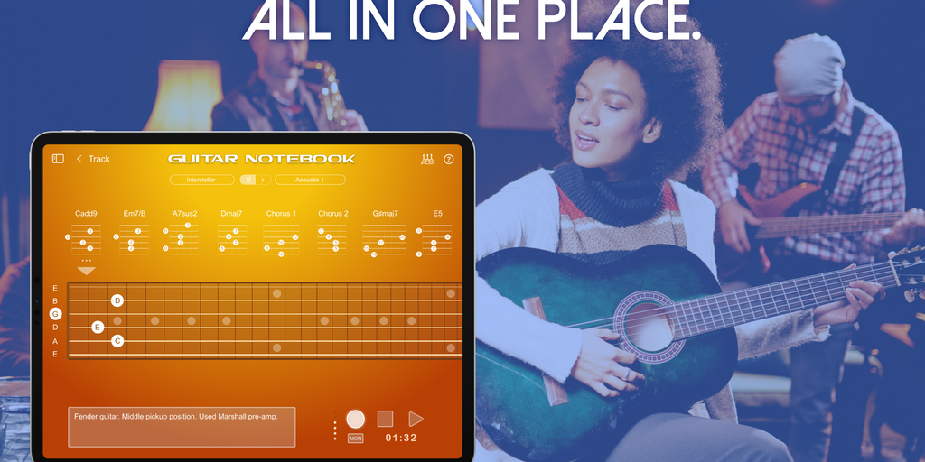 Guitar Notebook is an app for iPhone and iPad that helps keep all your notation, audio, and text together in one place, so you can save new song ideas, document DAW tracks, or review songs for rehears