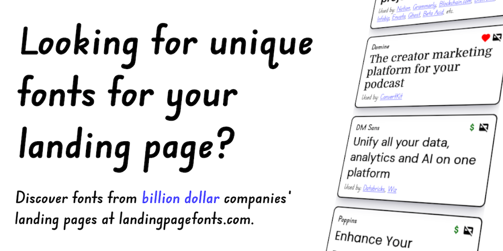 LandingPageFonts.com is the ultimate font resource for creating stunning landing pages! With fonts used by 30+ successful companies, our website offers a selection of sleek and professional fonts. Che