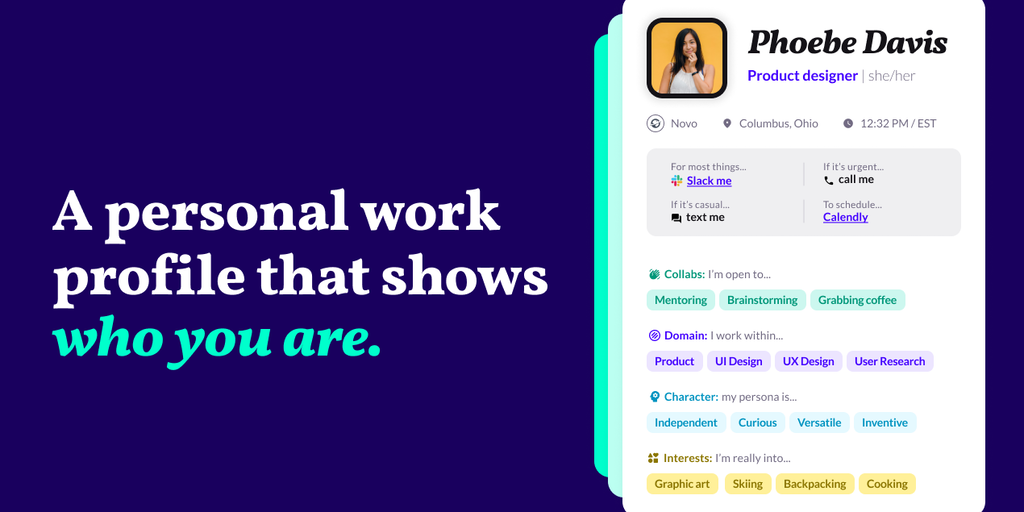 Create a beautiful shareable profile that shows what you do, how you work, and who you are. Use it to make real connections with the people you work with—new hires, mentors, and collaborators. Next ti