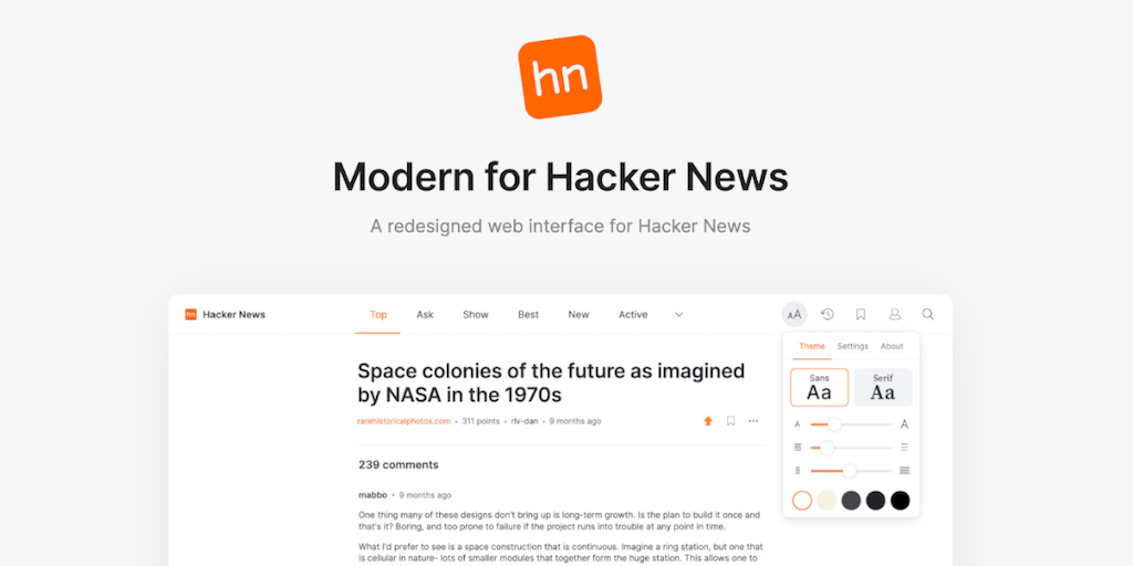 Modern for Hacker News - A beautiful, clean, modern web UI for Hacker News | Product Hunt