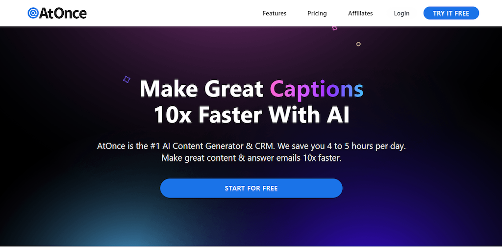 AtOnce is the best AI writer, AI content generator, and CRM. Create blog posts, emails, Ads, images, and more in minutes and save up to 90% of your time with AtOnce's AI.