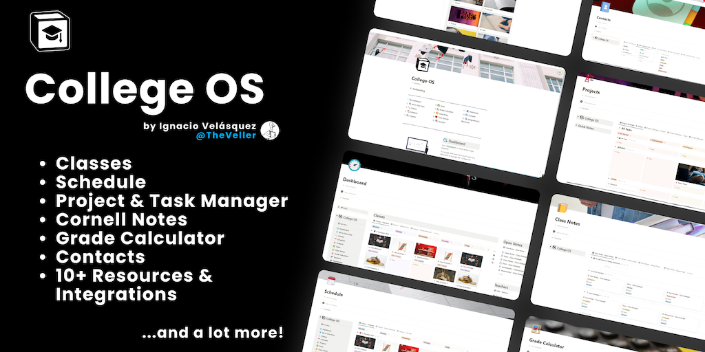 A customizable college system to manage your classes, notes, tasks, and more inside your digital workspace.