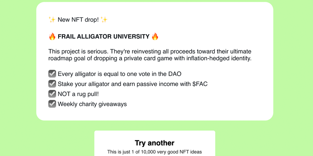 Very Good NFT Ideas - 10,000 highly-profitable ideas for new NFT collections | Product Hunt