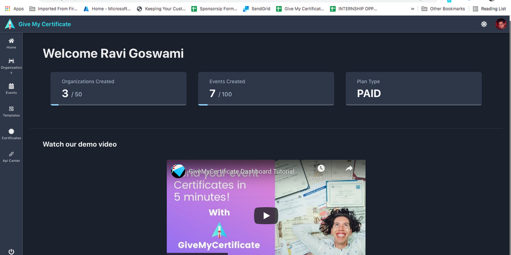 Give my certificate is a platform for organisations to create, generate and send verifiable documents and certificates. - 15+ years validity of the verifiable certificate - Complete certificate automa