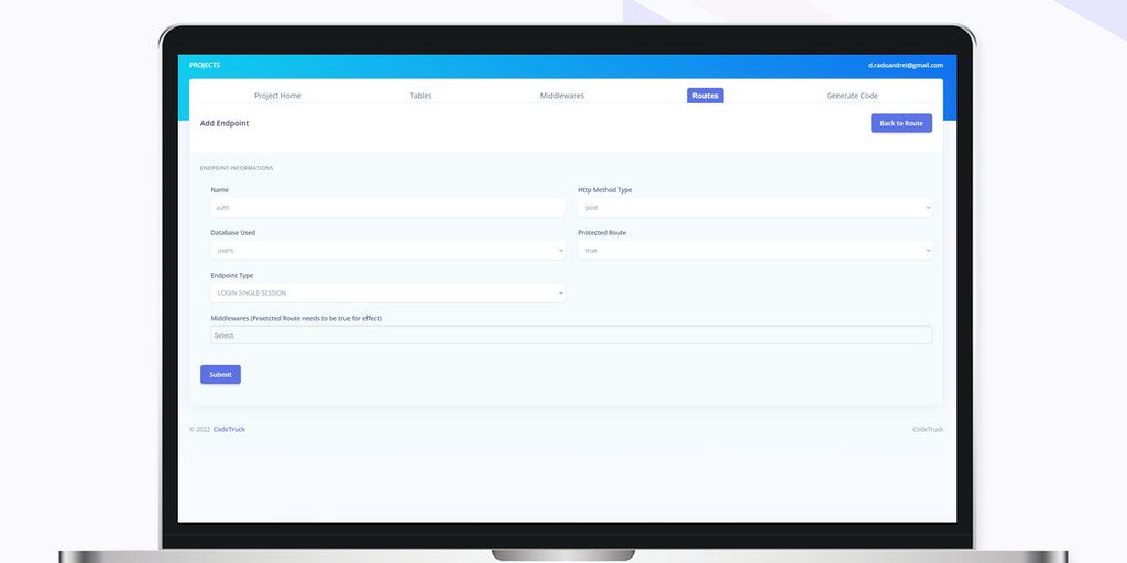 Codetruck is a dev tool made for backend developers that generate fully functional and configurable Node.js code. It is designed to meet your needs and automates tasks like database configuration, CRU