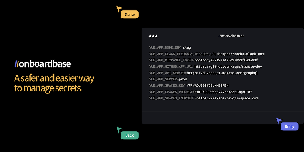 Onboardbase is the only secret manager that gives you automated compliance across developer machines and deployment environments focused on teams.