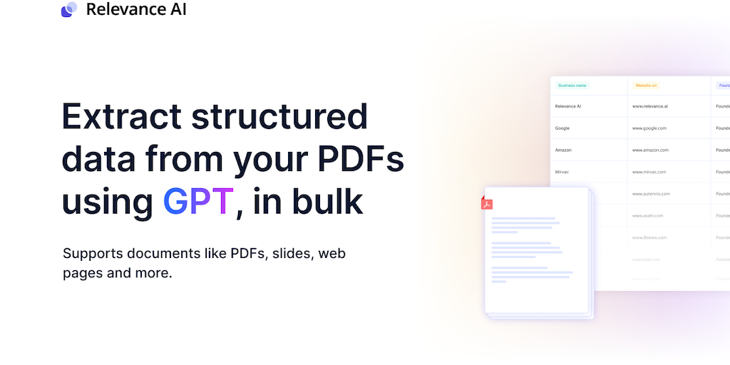 Document AI by Relevance - Extract structured data from your PDFs using GPT, in bulk | Product Hunt