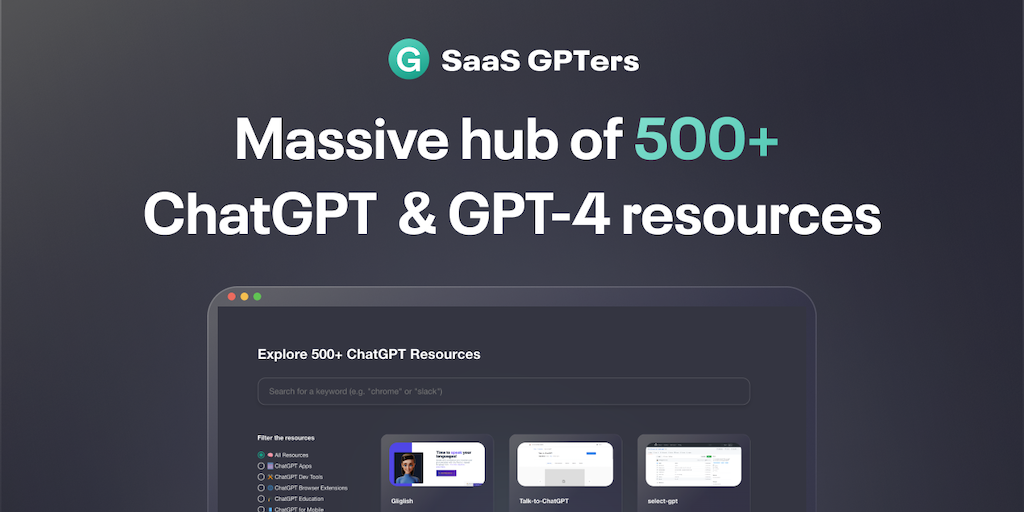 SaaS GPTers is a massive hub of 500+ ChatGPT resources, tools, and apps to help you supercharge your life and stay up-to-date with ChatGPT. Master ChatGPT with educational resources, or simply find in