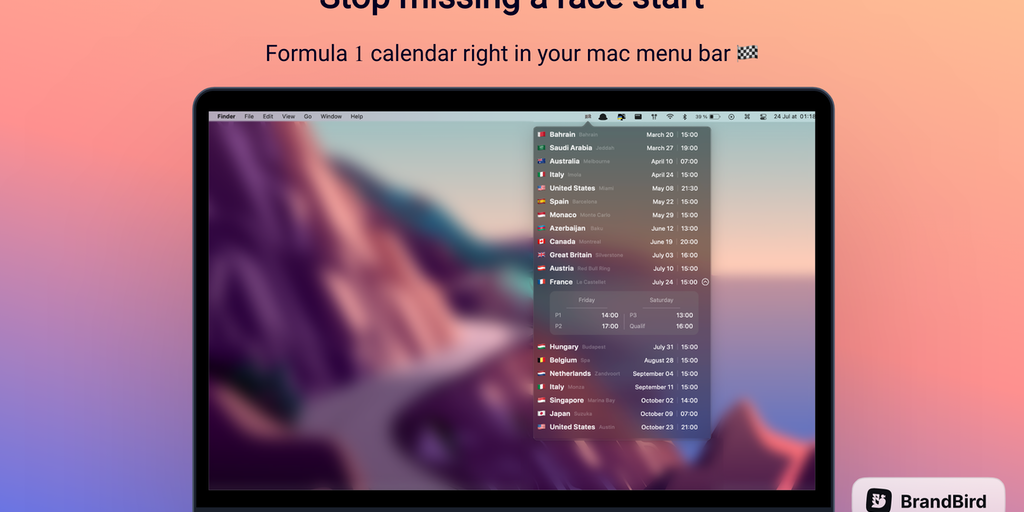 Formula 1 Calendar MenuBar - F1 race times easily accessible from your macOS menu bar! | Product Hunt