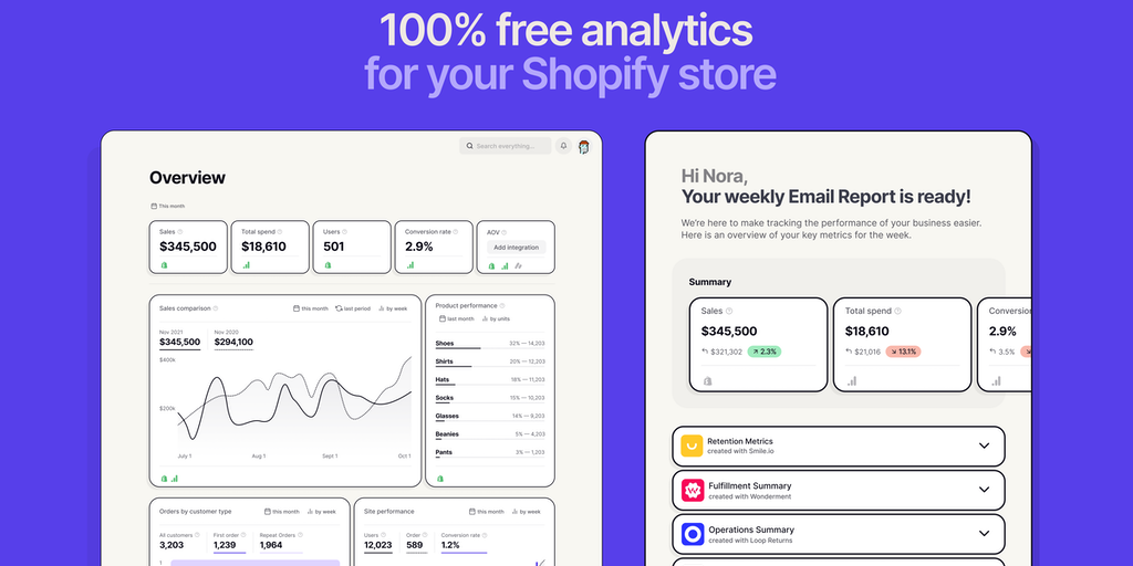 Combine Shopify store data with the tools and channels you love to create a single source of insight. Loved by Birthdate Co., Dose, and Disco.