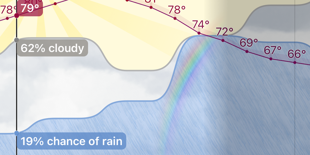 Weather Strip's ultra-compact hourly view shows the whole forecast at a glance, so you can more quickly choose the best times to go outside. Includes weather alerts, UV and air quality forecasts, and