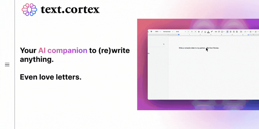 Whether you’re looking for a way to express your love for someone special or to finally let your feelings be known, Zeno ChatGPT by TextCortex will come up with the perfect words.