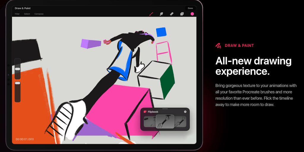 Procreate Dreams is an all-new animation app packed with powerful tools that anyone can use. Create engaging hand-drawn animations, motion graphics and enhance them with photos, videos and sound.