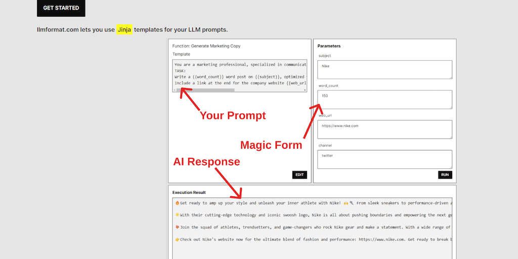 llmformat.com lets you create, store, run, and share prompts from your favorite large language model, gpt3.5! Since it acts as a powerful tech primitive, almost any workflow can be built on top of it.