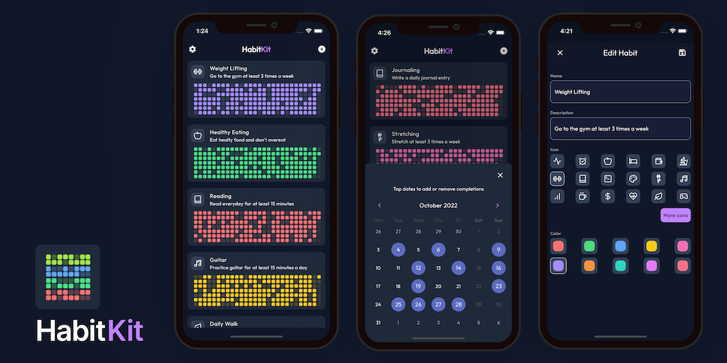 HabitKit is the perfect app for anyone looking to form new habits or break old ones. With HabitKit, you can track your progress with beautiful tile-based grid charts and draw motivation from growing t