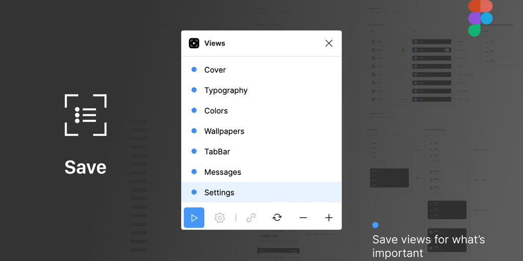 Figma Views lets you bookmark the areas of interest in your canvas. Use it to organize stuff you want to revisit like mapping the main parts of your file. And it shines when you're screen sharing! It
