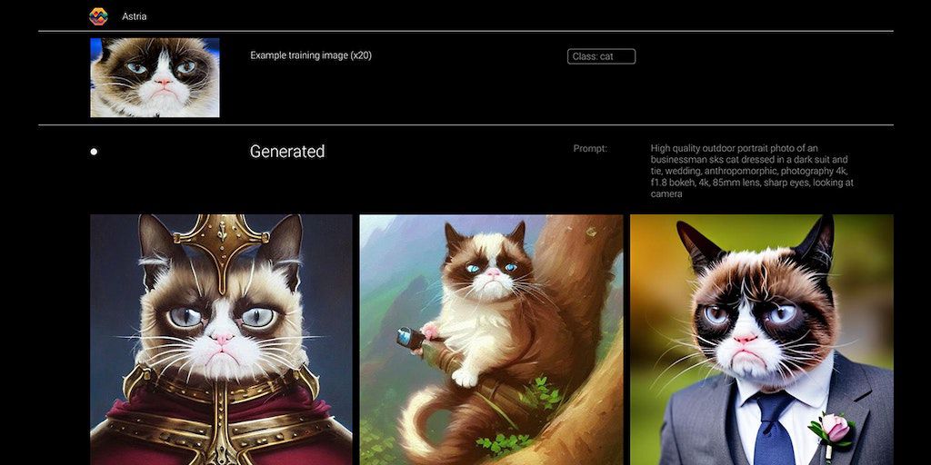 Astria uses generative imaging AI combined with your own particular concepts. We give precision tools to tame the AI beast to your unique needs. Upload pictures of your subject and start generating pr