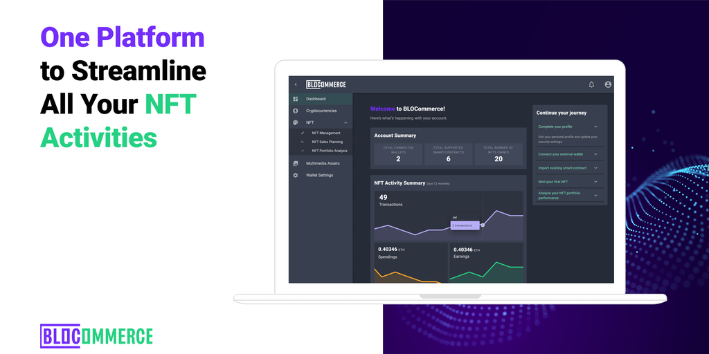 BLOCommerce enables NFT creators and traders to aggregate NFTs, track and analyze transactions, mint and monetize their NFTs across multiple blockchains, wallets, and marketplaces.