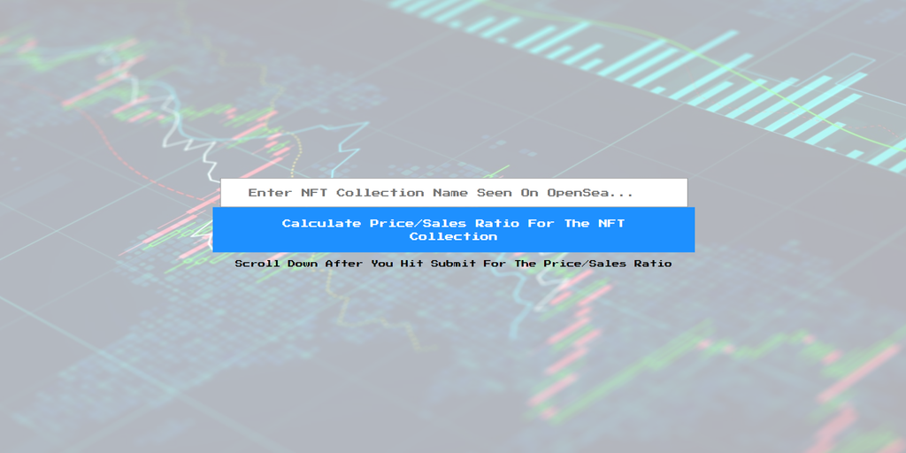 Enter an NFT collection name seen on OpenSea and this will calculate the Price-To-Sales Ratio for the NFT collection. It also provides the Market Capitalization of NFT collection, the current Floor Pr