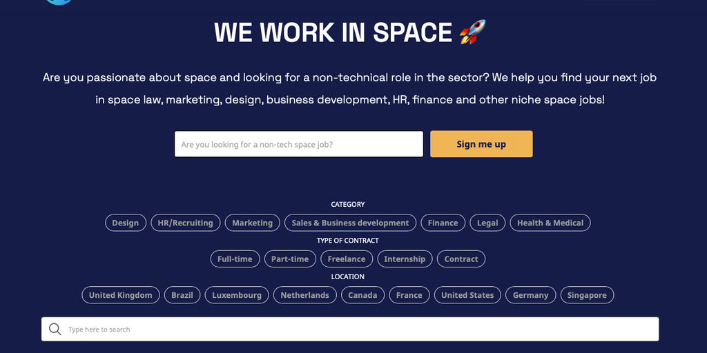 We Work In Space - Find non-tech jobs for people passionate about space | Product Hunt
